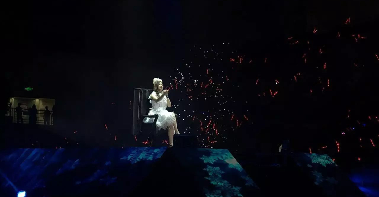 音樂會高潮部分非蘇永康和李霞兒深情對唱一首《從來不喜歡孤單一個人》莫屬了。李霞兒一身淺灰色長裙驚艷全場,盡顯女神風范!